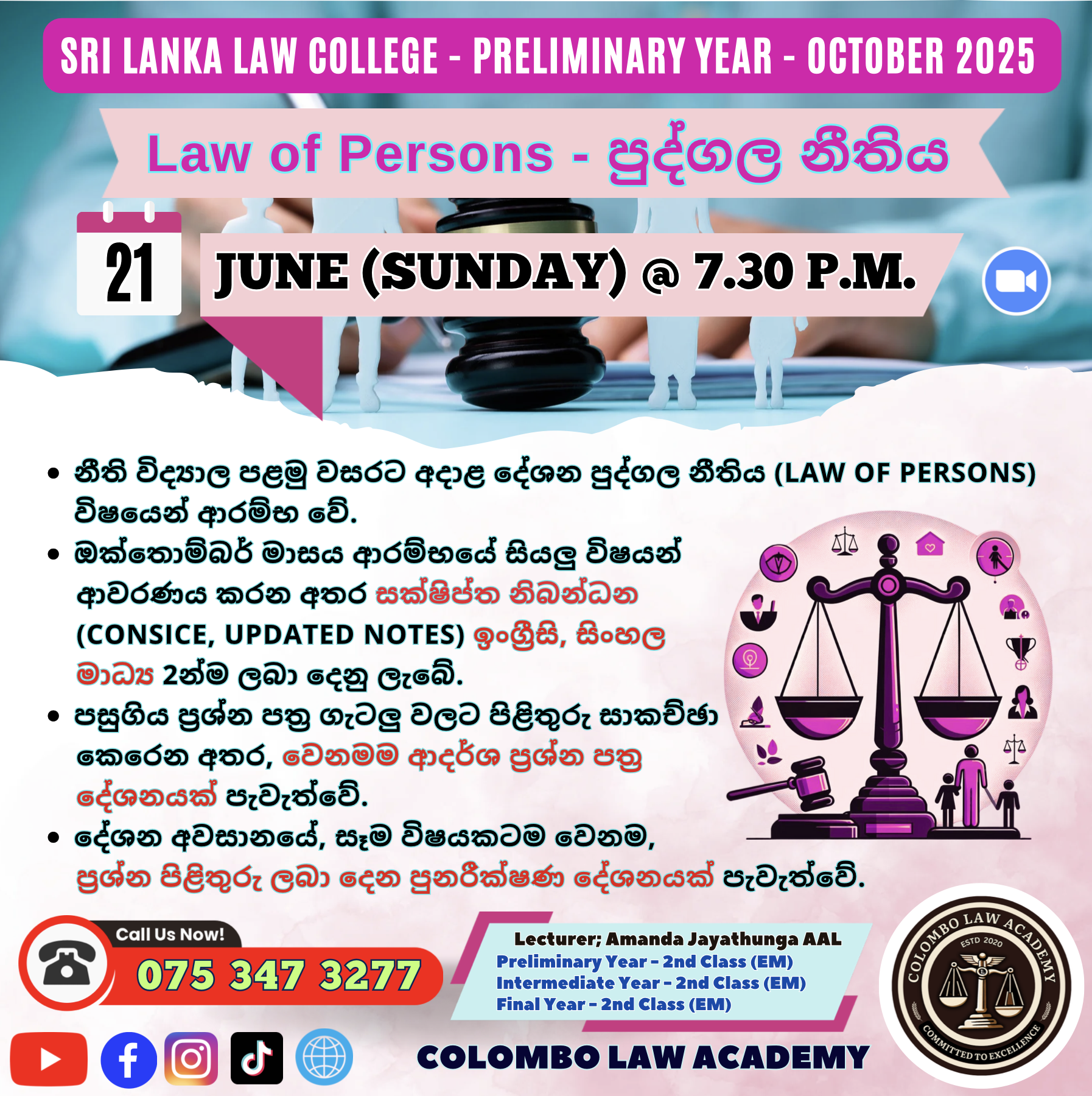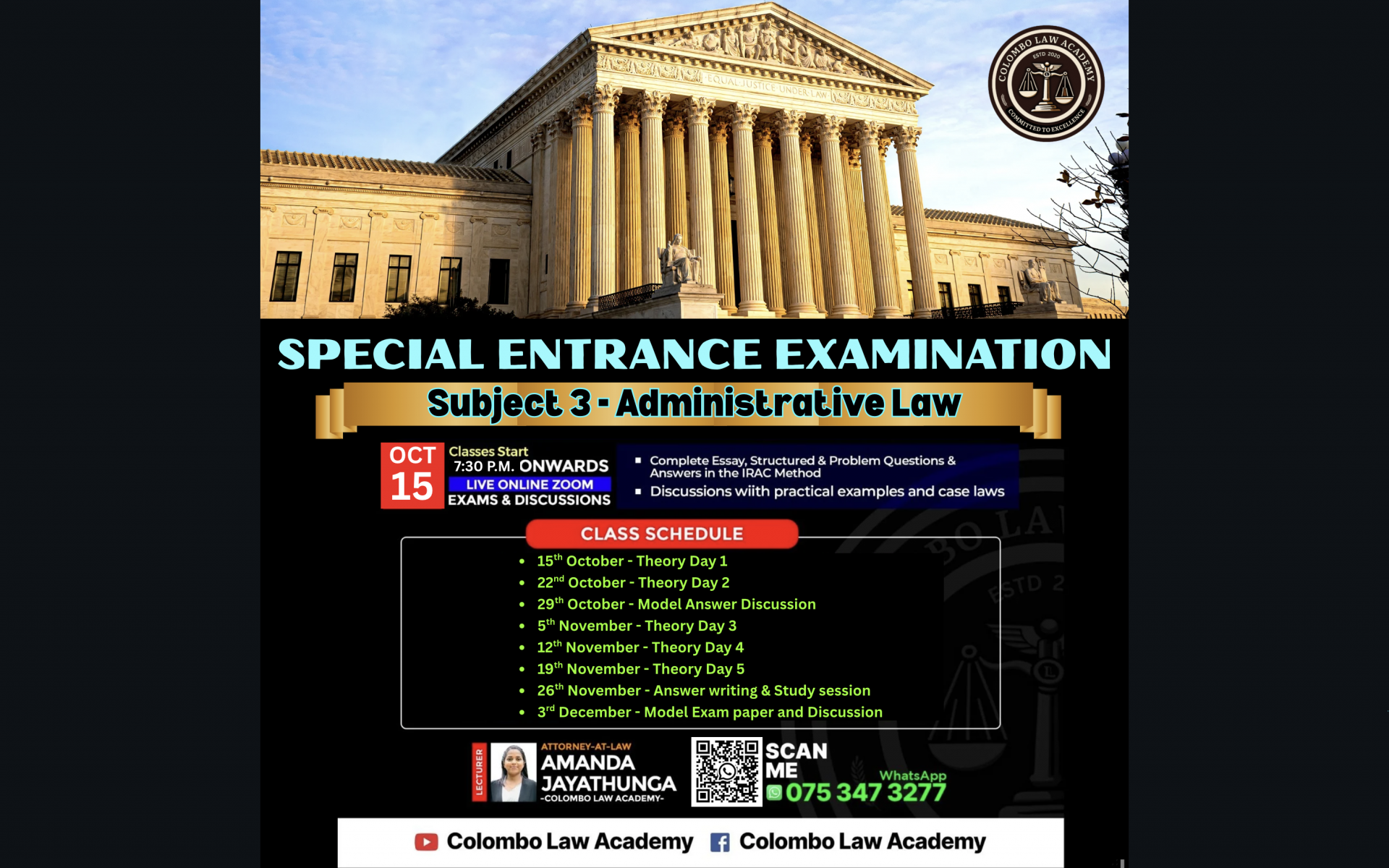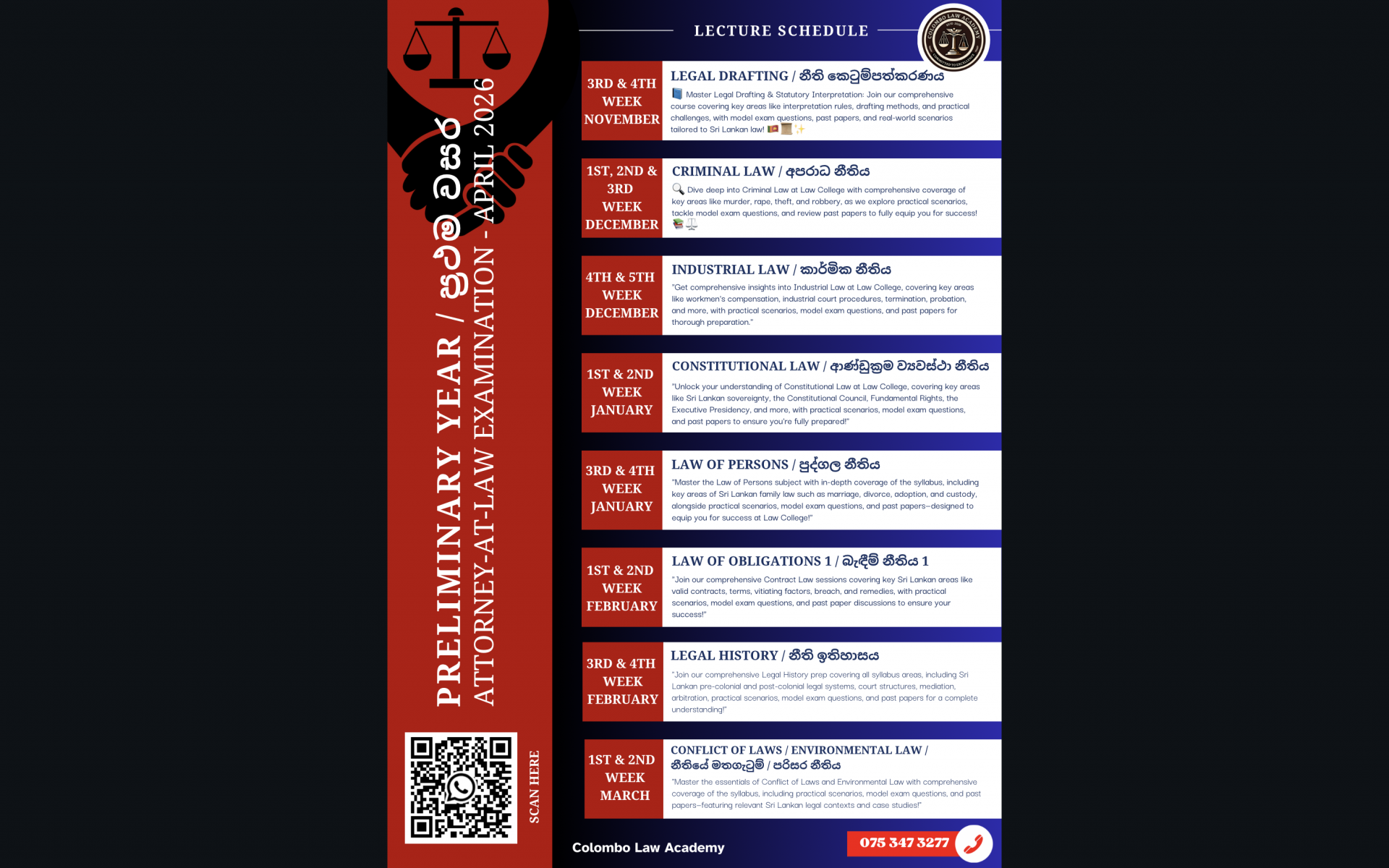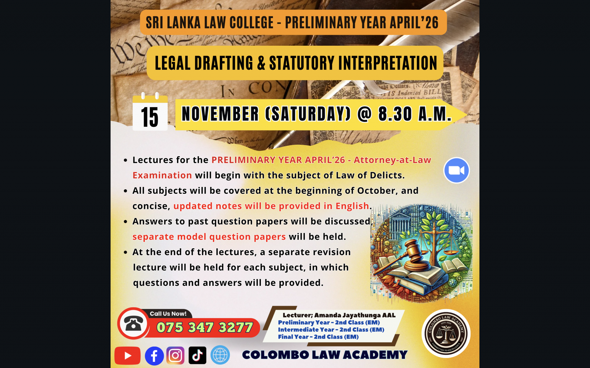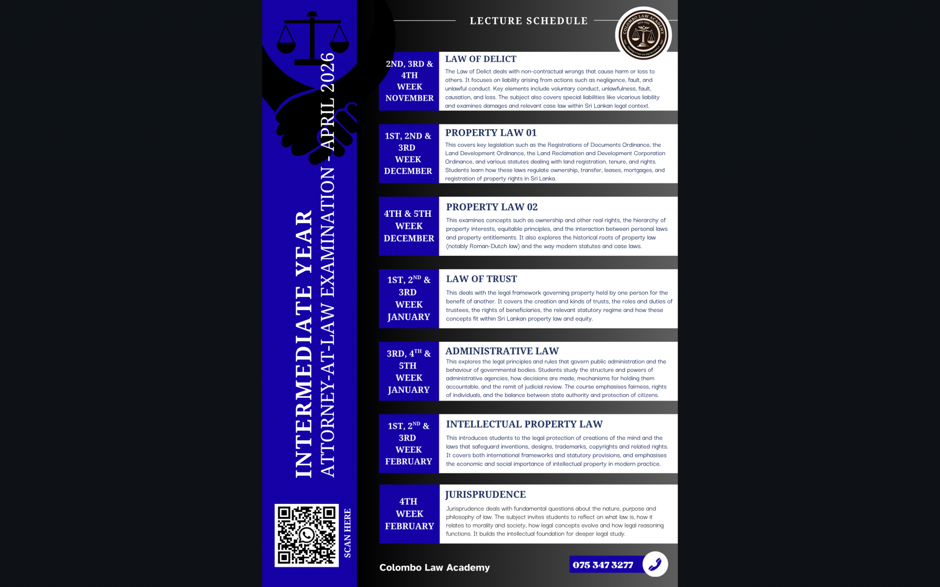 Empowering Sri Lanka’s future legal minds through expert-led lectures, practical training, and a passion for excellence in legal education.